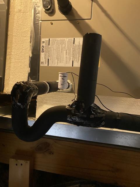 Arrived in La Grange for AC Maintenance, Upon our arrival we spoke with the customer about their concerns with the system shutting down. Performing our diagnostics we found that the system is a negative pressure system and was not equipped with a vent after the ptrap as well as the water removal system was backed up. We spoke with the customer about our concerns, went over repair options and maintenance program. Customer approved HF3A and the maintenance today. We cleared the water removal system, installed a vent pipe and checked the system performance. Found everything operating properly at this time.