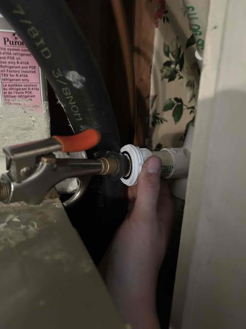 Smithville Heater repair When I arrived and turned on the air conditioning system I found that the refrigerant pressures were low. I spoke with the client about leak searching and she agreed. I did not find a leak with my electronic leak detector so I recommend adding dye and refrigerant. The client agreed to do the dye. I then inserted the dye and added 2 pounds of r410a. I let the system run for about 20 min and made sure the temperature split was good (18 degrees). I let the client know the office will call her to schedule a return in about 3 weeks to do the ultraviolet search.